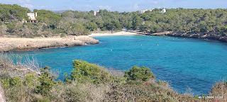 preciosa Cala de Mondragó con un color turquesa impactante, y tomamos varias fotografías desde distintos miradores. Continuamos por una senda que recorre la costa hasta la Playa S'Amarador. Arenas blancas cubiertas en la orilla de restos de algas, como la posidonia, de